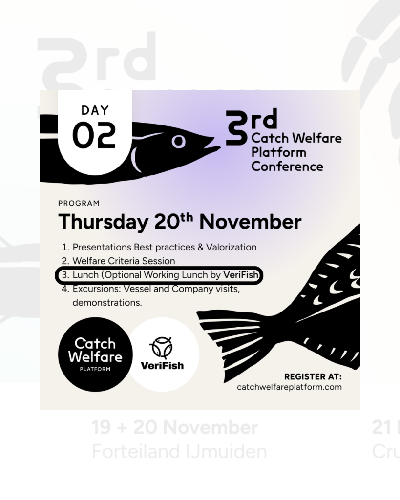 On November 20, the consortium will travel to IJmuiden to host a dedicated working lunch during the Catch Welfare Platform Conference. The session will engage producers, retailers, researchers, and other value-chain actors. It will gather feedback, and test preliminary outputs from the VeriFish indicator framework. This hands-on exchange will ensure the tools are practical, credible, and ready for broader piloting.